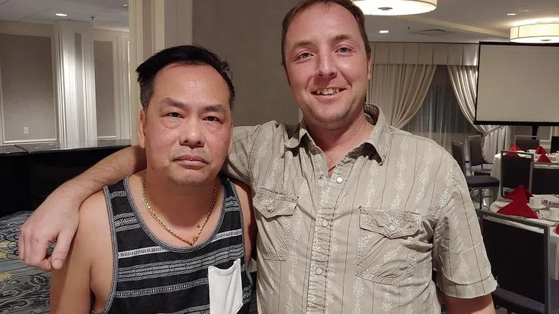 Josh Neudorf (right) and Joey Duong (left) helped thwart a would-be gunman at Hudsons in downtown Saskatoon on March 4, 2020. (Chris Vandenbreekel/650 CKOM)
