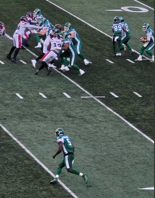 Even though Duke Williams left the game at one point, only to return because that is how tough he is, the Riders passing offense was salvaged with Kian Schaffer-Baker making great catches and the Riders’ new American receivers also kicking in contributions.