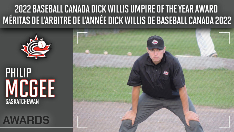North Battleford’s Philip McGee has been awarded the Dick Willis Memorial Award for Umpire of the Year, while Unity’s Regan L’Heureux has been named Baseball Canada’s Volunteer of the Year award recipient.