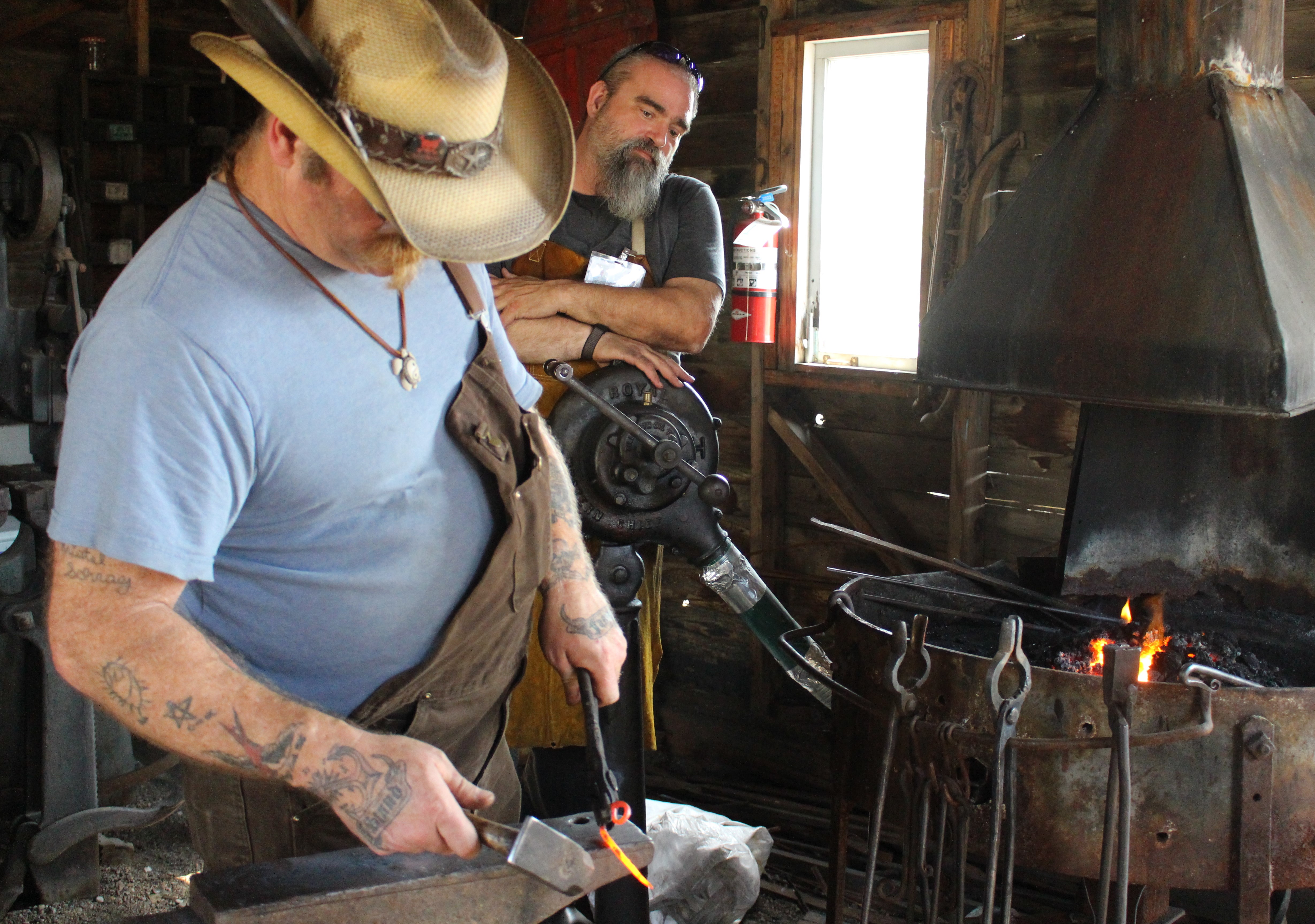 Rob Cates watches Blacksmith Carry Grant hammer a treble clef ornament at the Western Development Museum’s historic village on Sun., Aug. 18. (Julia Lovett-Squires/battlefordsNOW Staff)“This is the third year that it’s been held as History in Motion,” said Sharain Jones, operations manager.