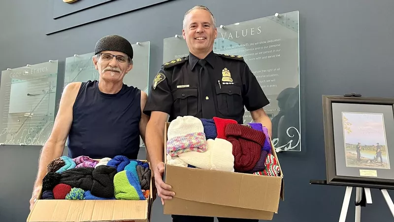 Glen Scrimshaw is the leader of Neighbourhood Angels Saskatoon — a group of volunteers who knit or crochet items to be donated to local charities, including the Saskatoon Police Service’s Mobile Crisis Unit. (Saskatoon Police Service/Facebook)