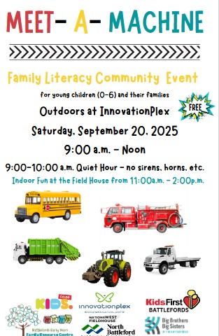 Meet – a – Machine is a great FREE event, Saturday September 20 from 9 a.m. until noon with Quiet Hour from 9 a.m. until 10 p.m. at InnovationPlex Parking Lot