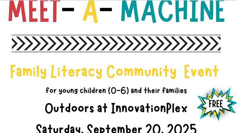 Meet – a – Machine is a great FREE event, Saturday September 20 from 9 a.m. until noon with Quiet Hour from 9 a.m. until 10 p.m. at InnovationPlex Parking Lot