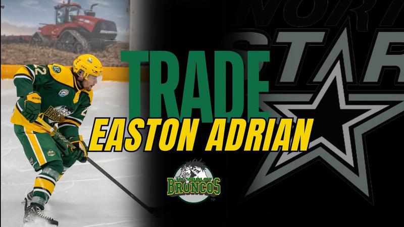 The Battlefords North Stars have added some size to their defensive corps, getting 6’3″ defenseman Easton Adrian from the Humboldt Broncos. In exchange, the Broncos received a player development fee (PDF) and a fourth-round pick in the 2026 SJHL draft.