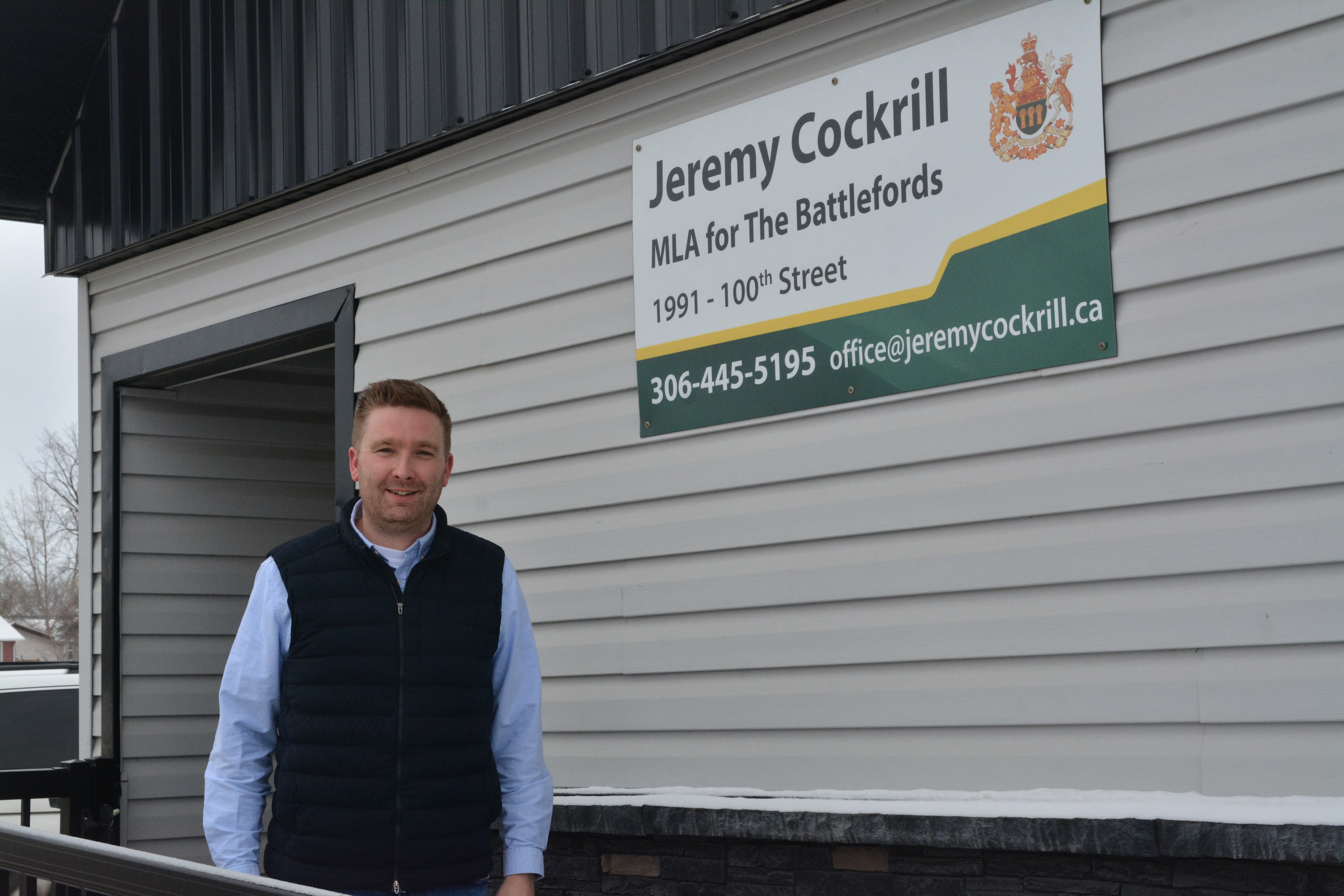 Jeremy Cockrill, MLA for the Battlefords and Saskatchewan’s minister of health, poses for a photo outside his office in North Battleford. (Kenneth Cheung/battlefordsNOW)