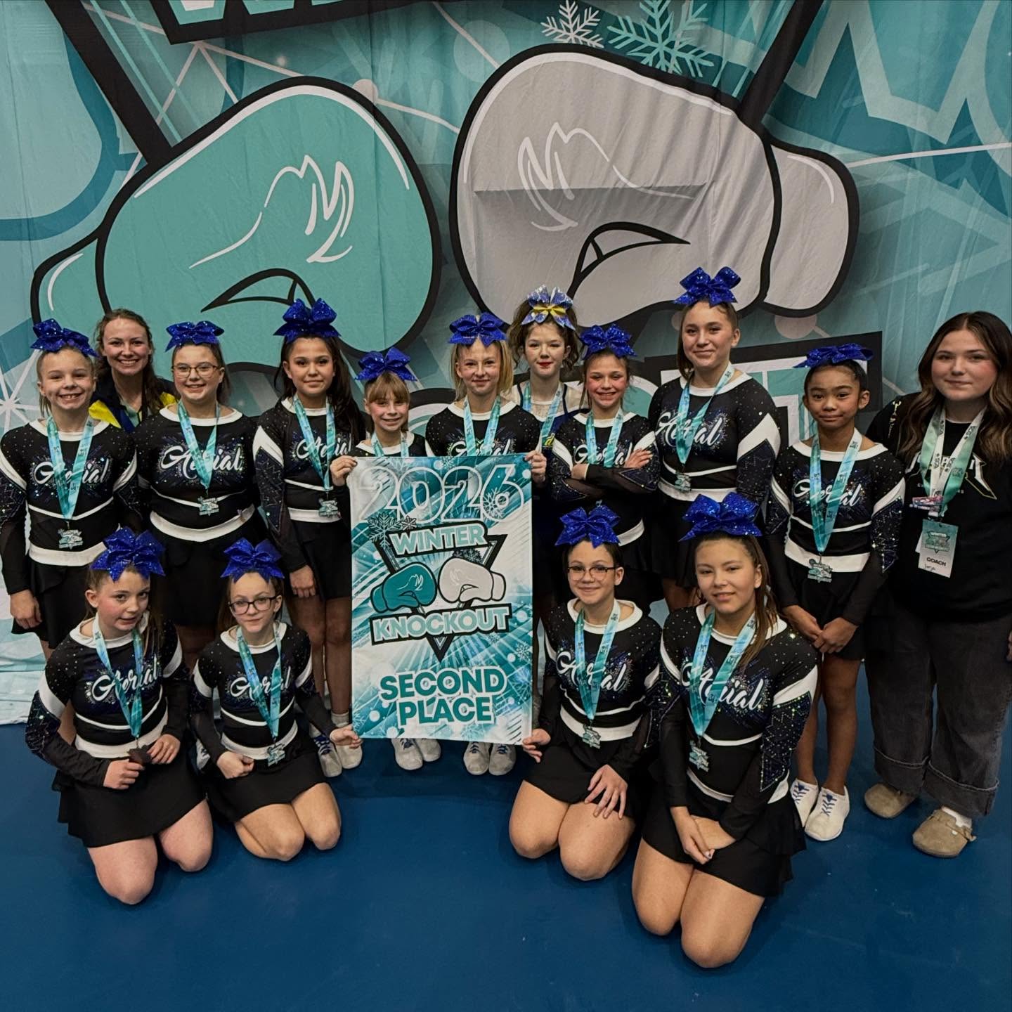With Aerial Cheer Athletics, the U16-Eclipse team placed second in their division, while the U-12 Nova team finished in third. The John Paul II senior high team finished in first place and won the Judge’s Choice award. Aerial Athletics Cheer Owner Rena Fauchon, who also serves as an advisor for John Paul II, spoke about the teams working on their craft since the Battle at the Border tournament in late 2025, where they got their first score sheet.