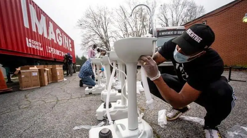 Grammy-winning artist Lecrae distributes wash stations