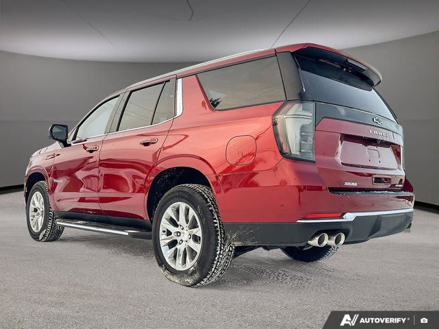 This Chevrolet Tahoe boasts a Turbocharged Diesel I6 3.0L/ engine powering this Automatic transmission. TRANSMISSION, 10-SPEED AUTOMATIC electronically controlled with overdrive, includes Traction Select System including tow/haul, SUN AND TOW PACKAGE includes (C3U) power sunroof and (NHT) Max Trailering Package, RADIANT RED TINTCOAT.*This Chevrolet Tahoe Comes Equipped with These Options *LPO, BLACK BOWTIE EMBLEMS, FRONT AND REAR (dealer-installed), ENGINE, DURAMAX 3.0L TURBO-DIESEL (305 hp [227 kW] @ 3750 rpm, 495 lb-ft of torque [671 Nm] @ 2750 rpm), 3 YEARS SIRIUSXM, Wireless Phone Charging, for portable devices, Wireless Apple CarPlay/Wireless Android Auto, Wipers, front intermittent, Rainsense, Wiper, rear intermittent with washer, Windshield, solar absorbing, Windows, power with rear Express-Down, Window, power with front passenger Express-Up/Down.* Stop By Today *Come in for a quick visit at Bridges Chevrolet Buick GMC, 2501 99th Street, North Battleford, SK S9A 2X6 to claim your Chevrolet Tahoe!