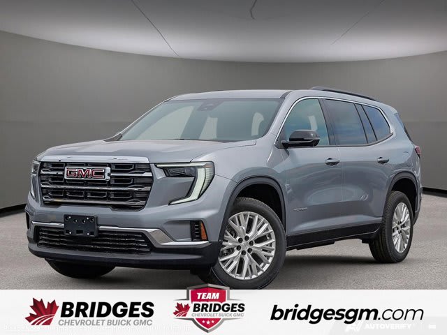This GMC Acadia boasts a Gas 2.5L/ engine powering this Automatic transmission. TRANSMISSION, 8-SPEED AUTOMATIC (STD), STERLING METALLIC, LPO, INTEGRATED CARGO LINER.* This GMC Acadia Features the Following Options *LPO, FLOOR LINER PACKAGE includes (RIA) first and second row All-weather floor liners, LPO and (RIB) third row All-weather floor liner, LPO, ELEVATION PREMIUM PACKAGE includes (ABE) 7-Passenger seating, (H7K) After Dark CoreTec or (H7L) Gideon Grey CoreTec seating, (A7J) 6-way power passenger seat adjuster, (AT9) passenger power lumbar seat adjuster, (Q76) 20 aluminum wheel, (Q3N) 20 all-season blackwall tire and (UG1) Universal Garage door opener , LPO, FRONT AND REAR SPLASH GUARDS, MOULDED, LPO, ALL-WEATHER FLOOR LINER, FIRST AND SECOND ROW Includes (RIB) third row All-weather floor liner, LPO., LPO, ALL-WEATHER FLOOR LINER, 3RD ROW, ENGINE, 2.5L TURBO DOHC SIDI with Variable Valve Timing (VVT) (328 hp [244 kW] @ 5500 rpm, 326 lb-ft of torque [442 N-m] @ 3500 rpm) (STD), ENGINE BLOCK HEATER, ELEVATION PREFERRED EQUIPMENT GROUP includes standard equipment, 3 YEARS SIRIUSXM, Wireless Charging for select devices.* Stop By Today *Test drive this must-see, must-drive, must-own beauty today at Bridges Chevrolet Buick GMC, 2501 99th Street, North Battleford, SK S9A 2X6.